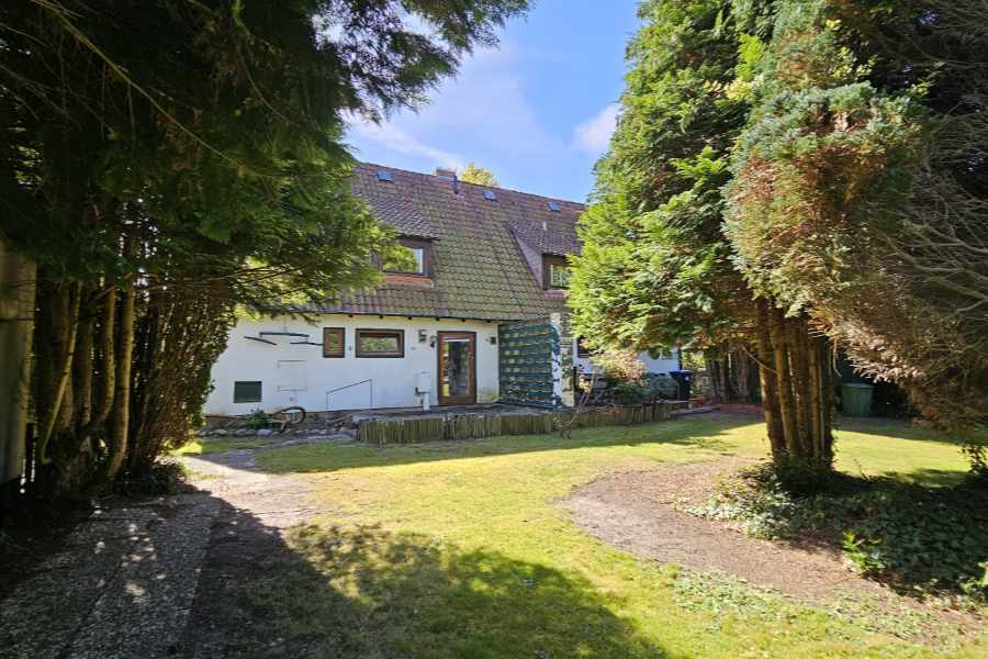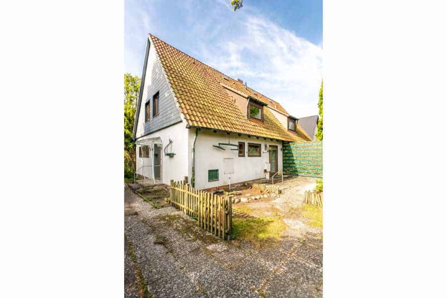 Am südlichsten Zipfel von Sasel/ Übergang nach Berne in absolut ruhiger Umgebung liegt diese 95m² große sanierungsbedürftige Doppelhaushälfte.