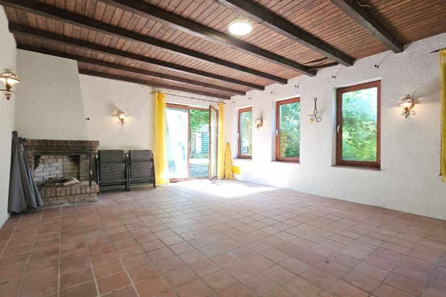 Auf dem Grundstück stehen noch eine Garage sowie ein in den 1970er Jahren errichteter Pavillon, der mit seiner Größe seinem Kamin (nicht mehr betrieben) hohe Aufenthalts- und Nutzungsmöglichkeiten bieten kann.