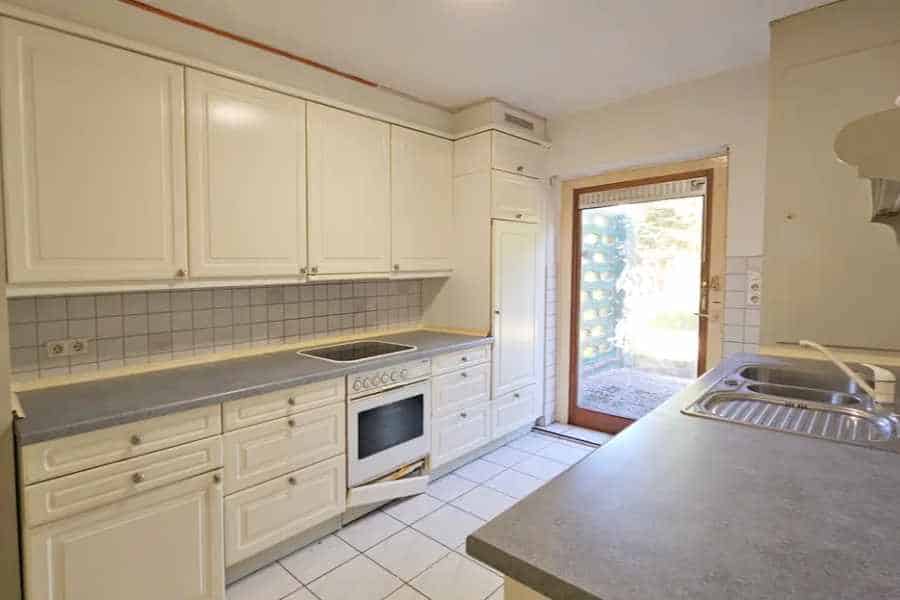 Das Wohn-Esszimmer als auch die Küche haben jeweils Zugang zu einer Terrasse. So haben sie tagsüber immer einen sonnigen Platz unter freiem Himmel.