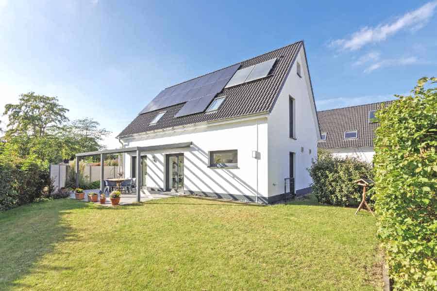 Das 895m² große Gesamtgrundstück wurde 2018 nach WEG geteilt und mit zwei freistehenden Einfamilienhäusern bebaut. Das hier angebotene südlichere Einfamilienhaus bietet klare Raumstrukturen mit hervorragend nutzbaren Flächen.